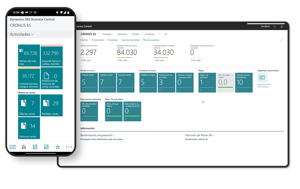 Dynamics 365 Business Central es el ERP en la nube de Microsoft que conecta en un solo sistema todas las áreas de tu empresa: finanzas, compras, ventas, proyectos, inventario y servicio al cliente.